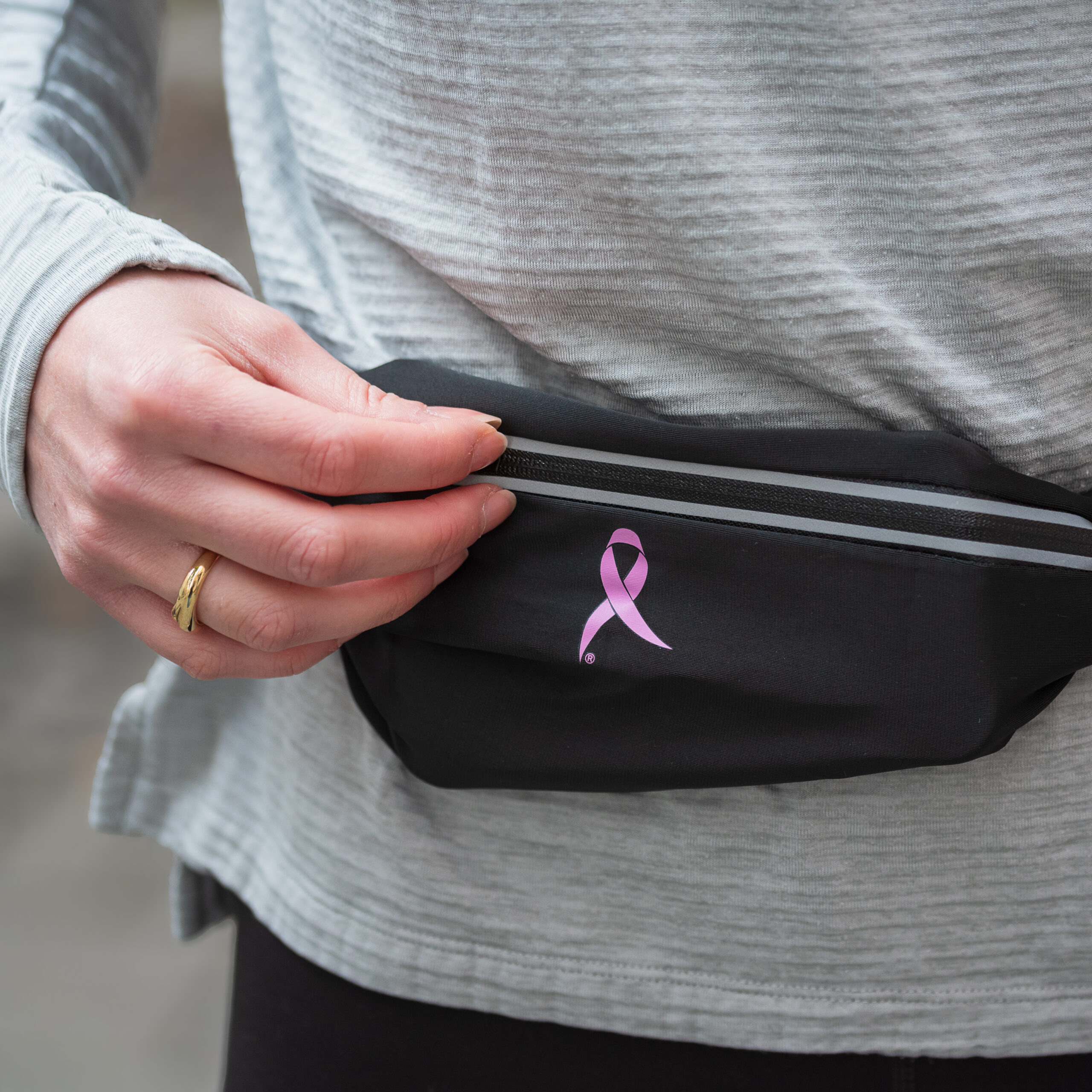 Et praktisk, behagelig og justerbart løpebelte med Rosa sløyfe-logo. Sitter godt på og er perfekt til oppbevaring av mobil, nøkler og kort under treningsøkten!🎀